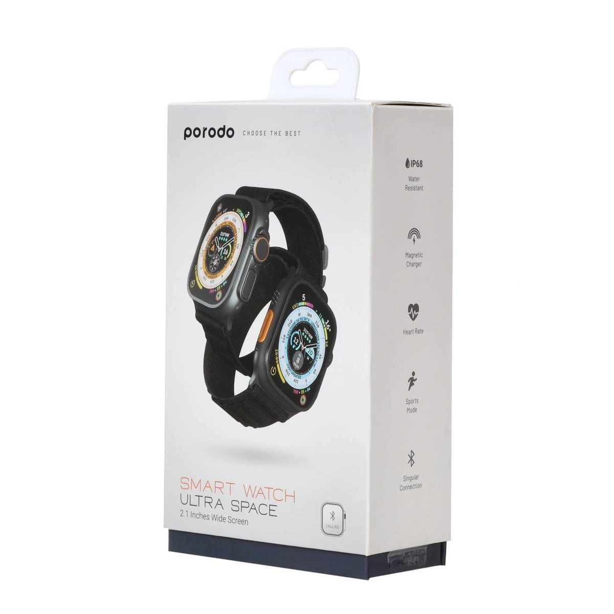 ساعت هوشمند Porodo Ultra Space ترکیبی است از طراحی لوکس و امکانات پیشرفته که برای کاربران حرفه ای و علاقمند به تکنولوژی طراحی شده است. این ساعت هوشمند با طراحی شبیه به Apple Watch Ultra و قاب فلزی مقاوم، حس کیفیت و استحکام را در نگاه اول منتقل می کند. صفحه نمایش بزرگ و با وضوح بالا با قابلیت روشنایی خودکار، تجربه ای روان و دلنشین از استفاده روزمره ارائه می دهد.