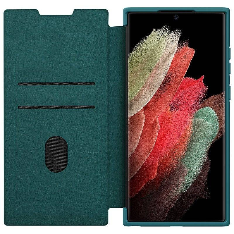 نیلکین چندین سری قاب چرمی دارد که یکی از آن ها Qin Pro Plain Leather است که ترکیبی از چرم و پارچه می باشد. کیفیت چرم به کار رفته در قاب چرمی نیلیکن سامسونگ Samsung S22 Ultra Nillkin Qin Pro Plain Leather Cloth Case بالا بوده وجلوی لغزش و جذب گرد و غبار را می گیرد. این قاب در برابر ضربات و فشار مقاوم است و طراحی شیکی دارد. در ضمن این کیف ضدلک بوده و در صورت کثیف شدن به سادگی با یک دستمال مرطوب تمیز می شود.