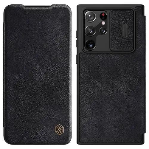 کیف چرمی نیلکین Samsung Galaxy S22 Ultra از محصولات شرکت نیلکین می باشد که یکی از شیکترین و کاملترین محافظ های گوشی سامسونگ اس 22 الترا می باشد. این کیف تمامی پشت و لبه ها و صفحه نمایش گوشی را در بر می گیرد و از ورود گرد و غبار ، ضربه و فشار به گوشی جلو گیری می کند. کیف چرمی نیلکین Samsung Galaxy S22 Ultra ساخته شده از چرم طبیعی می باشد. کیف چرمی نیلکین Samsung Galaxy S22 Ultra با وزن و حجمی ناچیز ، پشت و روی گوشی را کاملا می پوشاند و از آن در برابر خط و خش ، گرد و غبار ، ضربه و سایر آسیب های مشابه محافظت می کند. قسمت بیرونی کیف گوشی کاملا سخت است تا بتواند از گوشی سامسونگ اس 22 الترا به خوبی محافظت کند و در داخل نیز از جنس نرمی استفاده شده است تا در صورت تماس با صفحه نمایش هیچ آسیبی به آن وارد نشود.