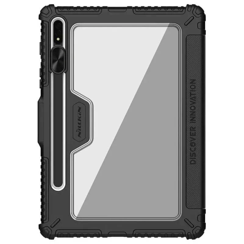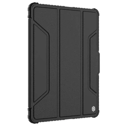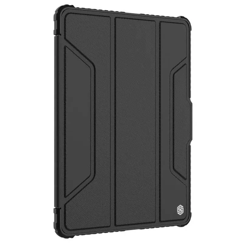 ساخته شده از مواد TPU، PC و PU، قالب با تزریق یکپارچه با طراحی هندسی، که به تبلت شما محافظت مضاعف می دهد. برای محافظت از دوربین و مقاومت در برابر خط و خش محافظ می کند، یک پوشش کشویی در پشت قاب تعبیه شده است. از طراحی خمش چند زاویه ای استفاده کنید تا تماشا را انعطاف پذیرتر و راحت تر کنید. شما به راحتی می توانید قاب را در موقعیت های مختلف تا کنید تا پایه ای برای تایپ، خواندن و مرور وب ایجاد کنید. اتصال آهنربایی داخلی از ویژگی روشن/خاموش خودکار صفحه نمایش پشتیبانی می کند. مجهز به ضربه گیر در هر گوشه برای محافظت از تبلت در برابر خراش و ضربه.