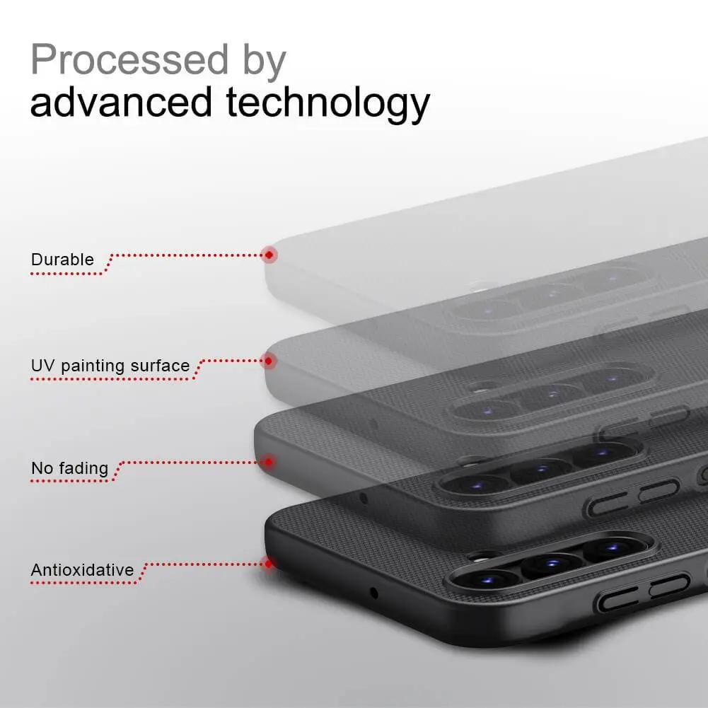 با استفاده از مواد پلی کربنات (PC) با فناوری UV Injection Mold ساخته شده که باعث افزایش دوام، مقاومت در برابر خط و خش و عدم جذب اثر انگشت می شود. سطح قاب دارای بافتی خاص است که آن را در برابر لغزش و لک مقاوم می کند و حس خوبی را هنگام در دست گرفتن به شما منتقل می کند.
