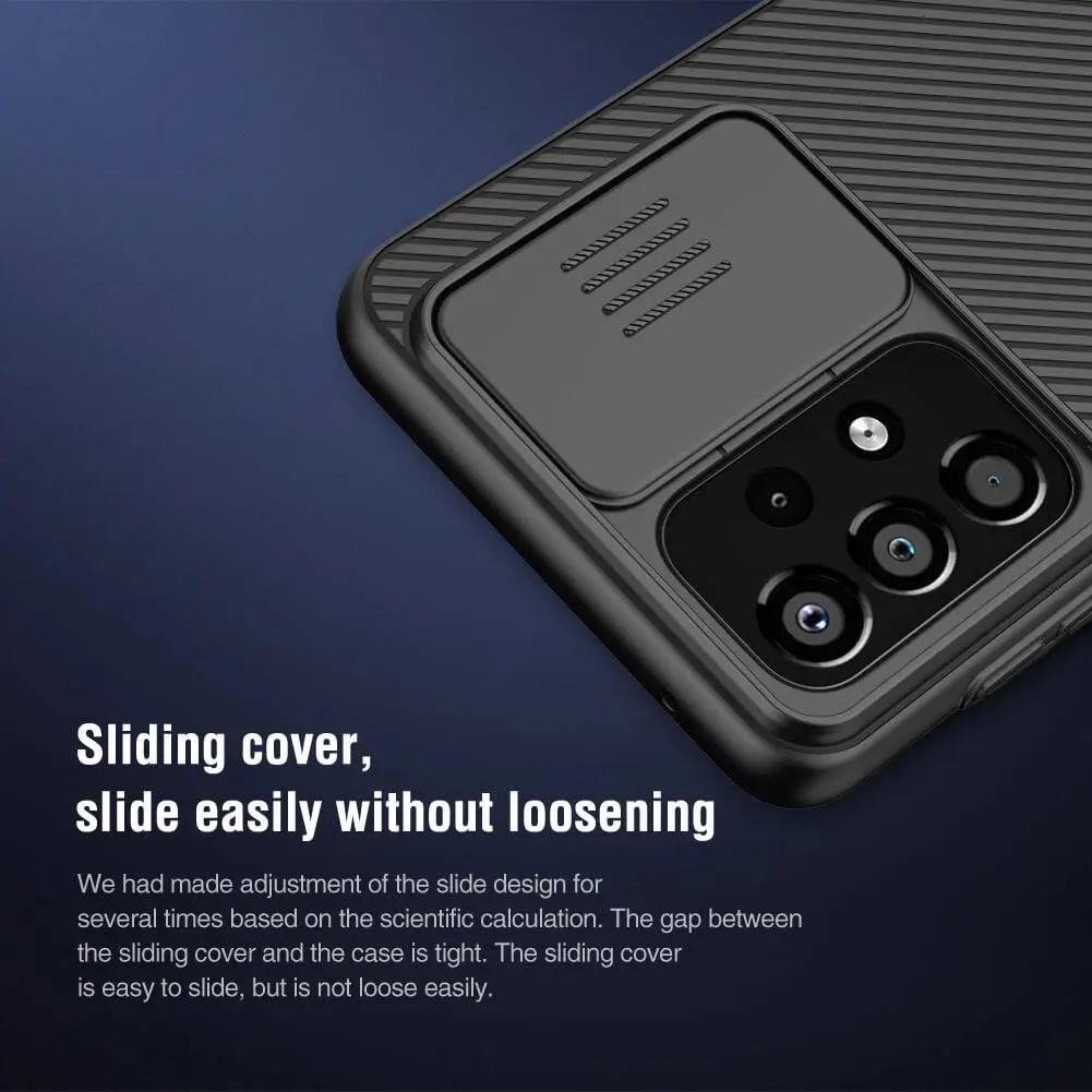 مهم ترین ویژگی این قاب، محافظ کشویی دوربین پشتی است که امکان پوشاندن کامل لنزها را فراهم می سازد. این طراحی، نه تنها از لنز در برابر آسیب های فیزیکی محافظت می کند، بلکه حریم خصوصی کاربران را نیز افزایش می دهد. ساختار ترکیبی از پلی کربنات سخت (PC) برای پنل پشتی و TPU نرم برای لبه ها باعث شده این قاب در عین مقاومت بالا، به راحتی روی گوشی نصب شود.