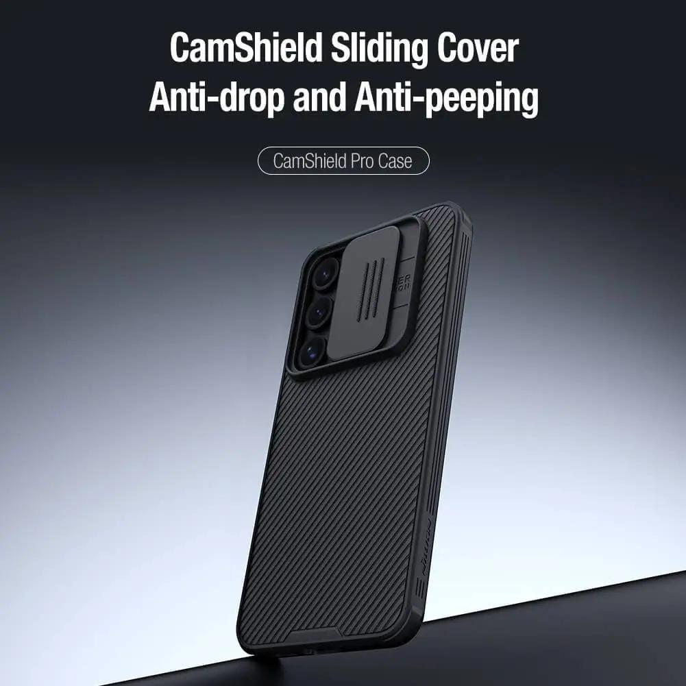 قاب Nillkin CamShield Pro مخصوص گوشی Samsung Galaxy S24 FE، انتخابی حرفه ای برای محافظت حداکثری از گوشی شما است. این قاب با طراحی مدرن و بهره گیری از درپوش کشویی برای محافظت از دوربین، از لنزهای گوشی در برابر خط وخش، ضربه و گردوغبار به خوبی مراقبت می کند.