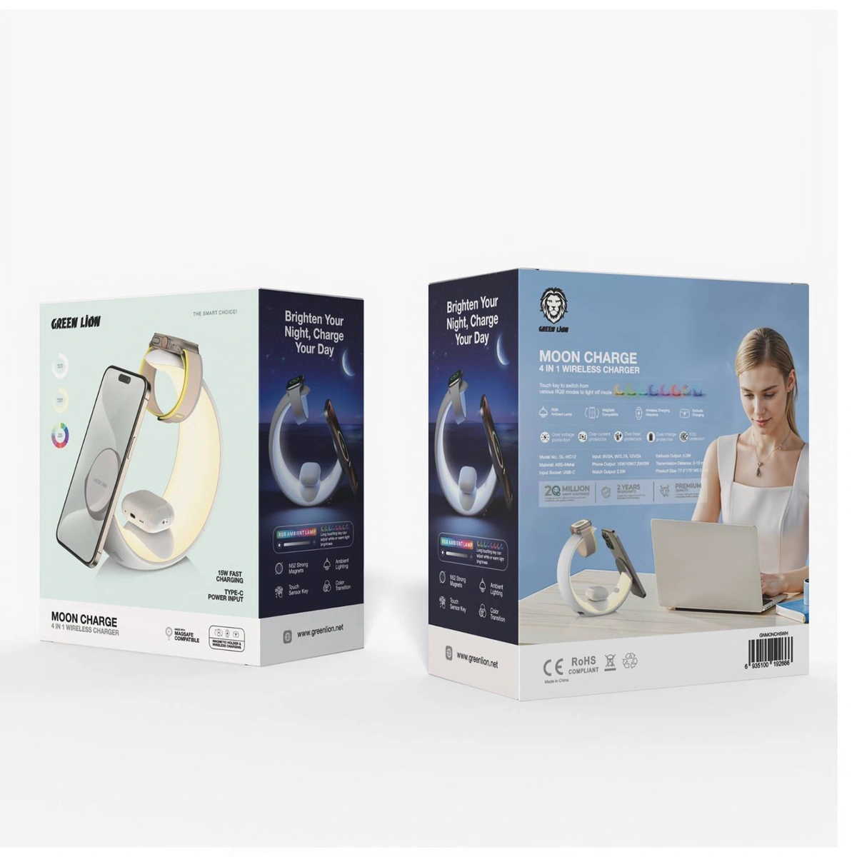 استند و شارژر وایرلس گرین لاین مدل Moon Charge GNMONCHS یک انتخاب حرفه ای، مدرن و کارآمد برای افرادی است که به دنبال شارژ هم زمان چند دستگاه دیجیتال خود با نهایت سرعت، ایمنی و زیبایی هستند. این شارژر بی سیم چندکاره با طراحی منحصر به فرد هلالی شکل و نورپردازی RGB جلوه ای لوکس به میز کار یا فضای اتاق شما می بخشد و در عین حال با عملکرد بالا، نیاز شما را برای شارژ سریع و بدون دردسر دستگاه ها برطرف می سازد.
