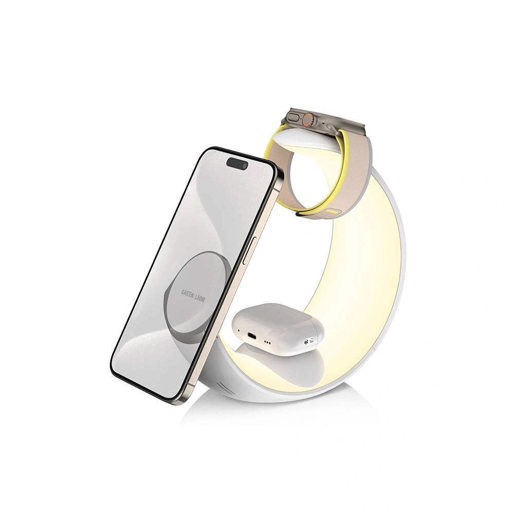 استند و شارژر وایرلس چندکاره مگنتی گرین لاین Green Lion Moon Charge GNMONCHS با امکان شارژ اپل واچ