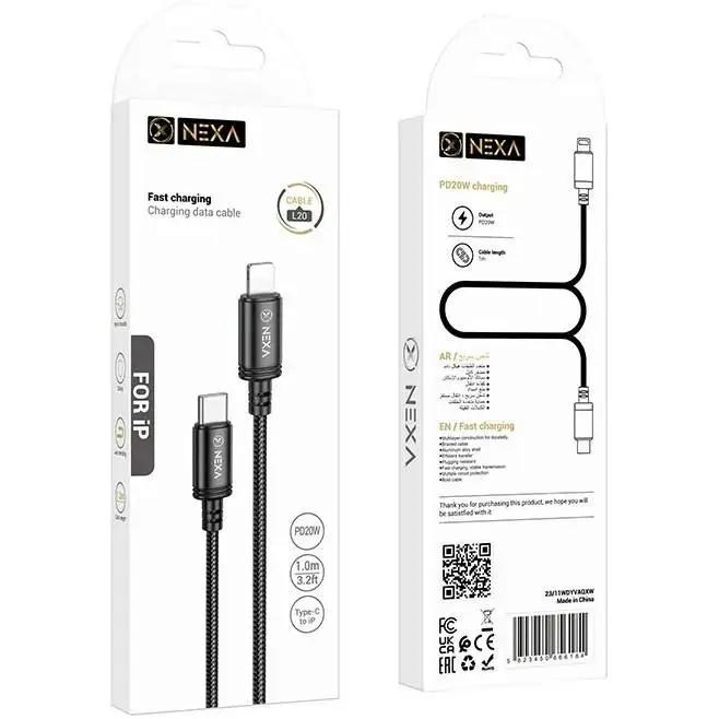 کابل شارژ 20 وات نکسا مدل L20 با سری تایپ سی به لایتنینگ