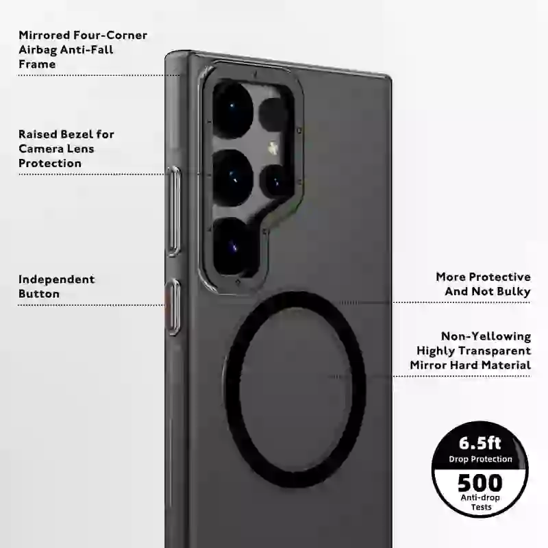 این کاور با بهره گیری از مواد پلی کربنات سخت در قسمت پشتی و فریم TPU انعطاف پذیر در اطراف، مقاومت بالایی در برابر ضربه، خط و خش و سقوط ناگهانی فراهم می کند. حلقه مگنت داخلی آن کاملاً با استاندارد MagSafe اپل سازگار است و می تواند به شارژرهای بی سیم و هولدرهای مگنتی متصل شود، بدون اینکه نیاز باشد قاب از گوشی جدا شود.