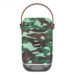 اسپیکر بلوتوث BTS103 از دیگر محصولاتی است که به تازگی توسط کمپانی انرجایزر به بازار عرضه شده است. این اسپیکربلوتوث که به صورت یک استوانه طراحی شده است از همین دست اسپیکرها است. طراحان این مدل همزان راحتی کاربری و زیبایی را در آن پیاده کرده اند در راستای بالا بردن رابط کاربری محصول با قرار دادن یک بند چرم به فکر راحتی حمل و نقل آن بوده اند. همچنین مدل ایستاده آن باعث می شود این محصول هنگامی که بر روی میز قرار میگیرد، جای کمی بگیرد. بر روی اسپیکر یک روکش پارچه ای با تنوع رنگی بالا و طرح خاص ارتشی با الهام از طبیعت و جنگل استفاده شده است. در قسمت انتهایی آن روکش فلزی استفاده شده است تا آسیبی به اسپیکر وارد نشود همینطور دکمه های کم و زیاد و جستجو و پاور در قسمت جلویی این بخش و پورت های USB ،AUX و ورودی کارت میکرو و درگاه شارژ MicroUSB در قسمت پشتی آن است. کمپانی انرجایزر در استفاده از این محصول کاملا دست شما را باز گذاشته اند و با ایجاد تمامی امکانات در آن تلاش نموده اند تا محصولی زیبا و بی نقص را به بازار عرضه دارند. در صورتی که در سفر شارژ گوشی شما تمام شد نگران نباشید این اسپیکر مانند پاوربانک عمل کرده و می تواند گوشی شما را شارژ نماید. آیا برنامه های رادیو را دنبال میکنید؟ با قابلیت پشتیبانی از رادیو FM این محصول از داشتن رادیو نیز بی نیاز می شوید. بارها اتفاق افتاده است که وقتی گوشیتان به اسپیکر متصل است زنگ بخورد در این مواقع چه کاری انجام می دهید اسپیکرتان را خاموش می کنید تا این اتصال قطع شود؟ با کمک میکروفون داخلی موجود در این اسپیکر می توانید تماستان را متصل نموده و به مکالمه با دوستانتان بپردازید. برای استفاده از این محصول تنها کافی است که بلوتوث تلفن همراه خود را روشن و اسپیکر را به آن متصل کنید. اسپیکر بلوتوث BTS103 شرکت Energizer انرژی خود را از یک باتری داخلی 1200میلی آمپرساعتی تأمین می کند. گفتنی است توان خروجی این محصول 5 وات است و با توجه به آن توانایی پخش صدای با کیفیتی را داراست