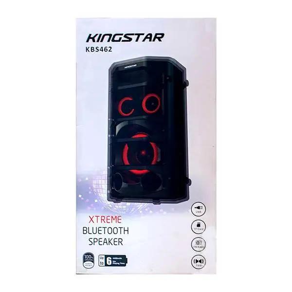 اسپیکر KBS462 کینگ استار مانند یک چمدان مسافرتی کوچک طراحی شده است.دارای وزن 4.1کیلوگرم است. بر روی آن بخشی برای اعمال تنظیمات مورد نظرتان در قسمت treble, base, echo قرار گرفته است. این اسپیکر همچنین کارت TF , فلش مموری و AUX را پشتیبانی می کند. محصول دارای ریموت کنترل است و بخش جالب تر آن این است که قابلیت ضبط صدا را داراست، با میکروفون وایرلسی که همراه اسپیکر قرار دارد می توانید تمرین خوانندگی کنید و هم زمان صدای خود را ضبط نمایید. همچنین با این اسپیکر میتوانید به کانال رادیویی مورد علاقه خود گوش فرا دهید.