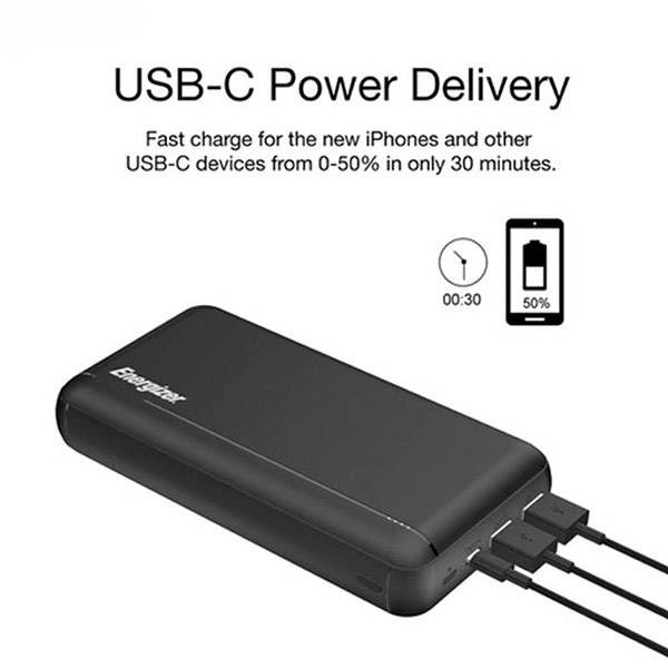 یک محافظ ایمنی 12 نقطه ای که محافظت کامل در برابر آسیب پذیری را برای کاربران و دستگاه ها تضمین می کند. این پاوربانک با توجه به مشخصات دستگاه مورد استفاده از یک موتور سرعت دوبل که دارای فناوری پیشرفته است استفاده کرده و با استفاده از تکنولوژی PD و QC.3 باعث بالا بردن سرعت شارژ دستگاه میشود. برای تلفن های هوشمند ، رایانه لوحی و موارد دیگر Energizer UE30057PQ ظرفیت 30000 میلی آمپر ساعت با سه خروجی شامل 2 USB-A هوشمند و 1 USB-C را فراهم می کند و به شما این امکان را می دهد تا در حین حرکت مقدار زیادی از دستگاه را شارژ کنید. فناوری USB-C Power Delivery به شما این امکان را می دهد تا iPhone8/8 Plus/X/XR/11/11Pro را تنها در 30 دقیقه از 0 تا 50 درصد شارژ کنید.