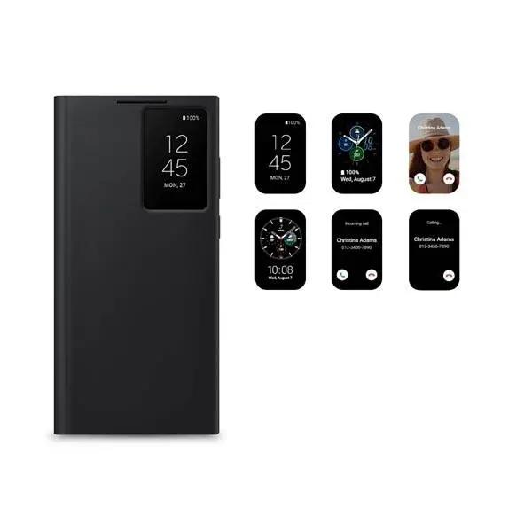 کیف هوشمند اصلی سامسونگ Samsung Galaxy S22 Ultra Clear View Cover مشکل کیف های موبایل موجود در بازار را حل می کند و به شما این امکان را می دهد که حتی در زمان بسته بودن درب کیف، اعلانات خود را که روی صفحه نمایش;بالا نمایش داده می شود، مشاهده کنید و حتی آن ها را کنترل کنید. برای مثال در زمانی که تماسی دریافت می کنید بدون باز کردن کاور می توانید نام و شماره تماس گیرنده را ببینید و با سوایپ کردن روی قسمت سمت راست که مشابه یک مانیتور است، به تماس پاسخ دهید یا رد تماس کنید.