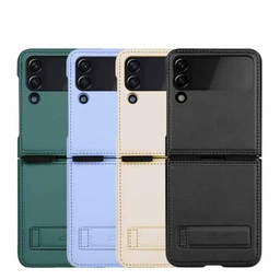 فلیپ کاور چرمی نیلکین زد فلیپ 4 دارای پایه استند افقی روی بدنه کاور جهت استفاده گوشی در حالت نشسته و افقی بوده که می توانید با استفاده از این کاور از گوشی گلکسی زد فلیپ خود در حالت افقی نیز استفاده نمایید.