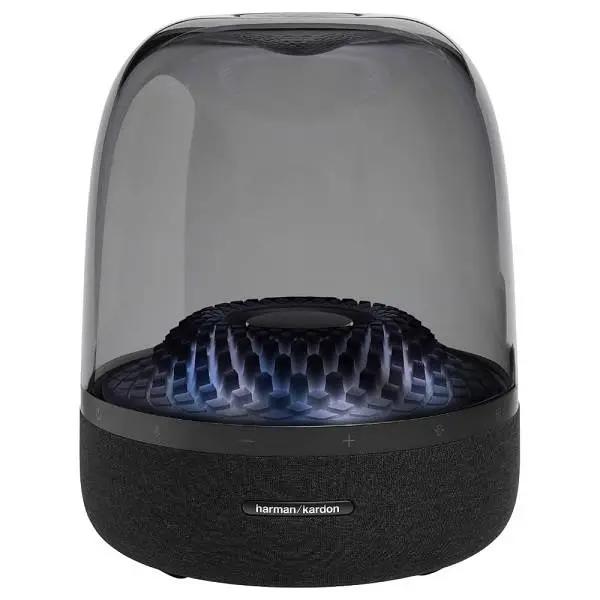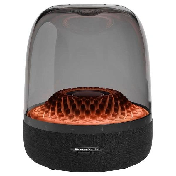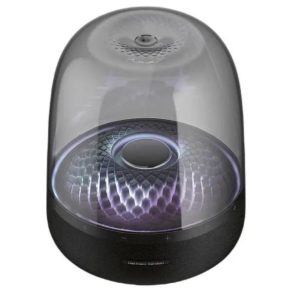 هارمن کاردن آئورا استودیو 4 در میان دیگر اسپیکرهای هم رده خود از کیفیت بالاتری برخوردار است. این اسپیکر بلوتوثی با طراحی 360 درجه، قابلیت نمایش موسیقی را در سراسر اتاق فراهم می کند. به طوری که اگر آن را در وسط اتاق قرار دهید صدا به اندازه یکسانی در فضا پخش می شود. Aura 4 با توان خروجی 130 واتی خود صدای چشمگیری را به گوش شما می رساند. همچنین به لطف سیستم صوتی پیشرفته و توانمندی که دارد به شما اجازه می دهد آهنگ های مورد علاقه خود را به صورت 360 درجه گوش کنید. اگر به موسیقی های آکوستیک علاقه مند هستید؛ قطعا Aura Studio 4 یکی از بهترین گزینه ها برای شماست. علاوه بر این باس فوق العاده آن شما را شگفت زده خواهد کرد. در پشت اسپیکر شما می توانید سوکت برق و پورت AUX را مشاهده کنید. دکمه پاور نیز در کنار آن ها جا گرفته است. اگر بلندگو را وارونه کنید؛ می بینید که یک ووفر در پایین آن قرار دارد که صدایی با کیفیت بیشتر از انتظار شما تولید می کند. نحوه اتصال به اسپیکر بلوتوثی Harman Kardon Aura Studio 4 بسیار آسان است. اتصال بلوتوثی یکی از روش های محبوب برای اتصال دستگاه ها به اسپیکر است و Aura Studio 4 با پشتیبانی از بلوتوث 4.2، اتصال دقیق و پایداری را برای شما فراهم می کند. به این ترتیب، شما می توانید به راحتی گوشی همراه، تبلت و لپ تاپ خود را به اسپیکر متصل کنید. علاوه بر اتصال بلوتوثی، با قرار دادن یک درگاه AUX، امکان اتصال سیمی نیز در اختیار شما قرار می گیرد.