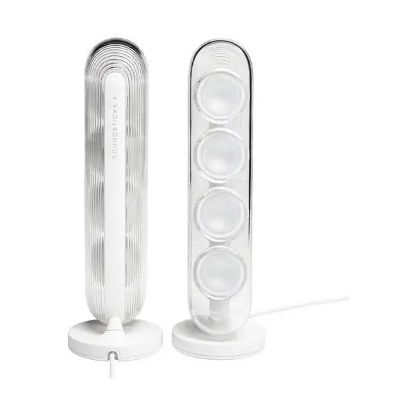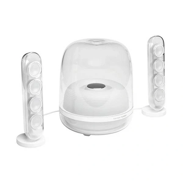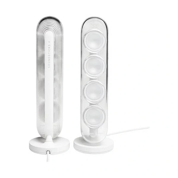 اسپیکر هارمن کاردن soundsticks 4 به خانه شما یک زیبایی و درخشندگی دائمی می بخشد. در این شاهکار زیبا از برند افسانه ای هارمن کارمن، صدایی فوق العاده با یک طراحی جذاب و جالب ترکیب شده است. شما با کیفیت صدای عالی و مواد زیبا و شفاف که برای ساخت این وسیله استفاده شده است، می توانید یک هارمونی را به زندگی خود بیاورید.